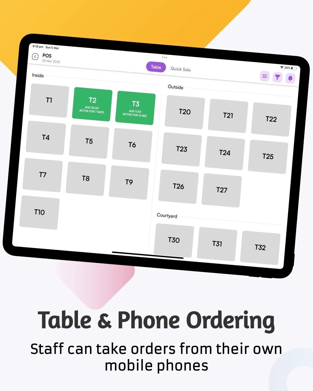 View fullsize Take Table or Phone Orders directly from the same app. Your staff can take table orders from their own mobile phones so you don‘t have to buy additional hardware.
